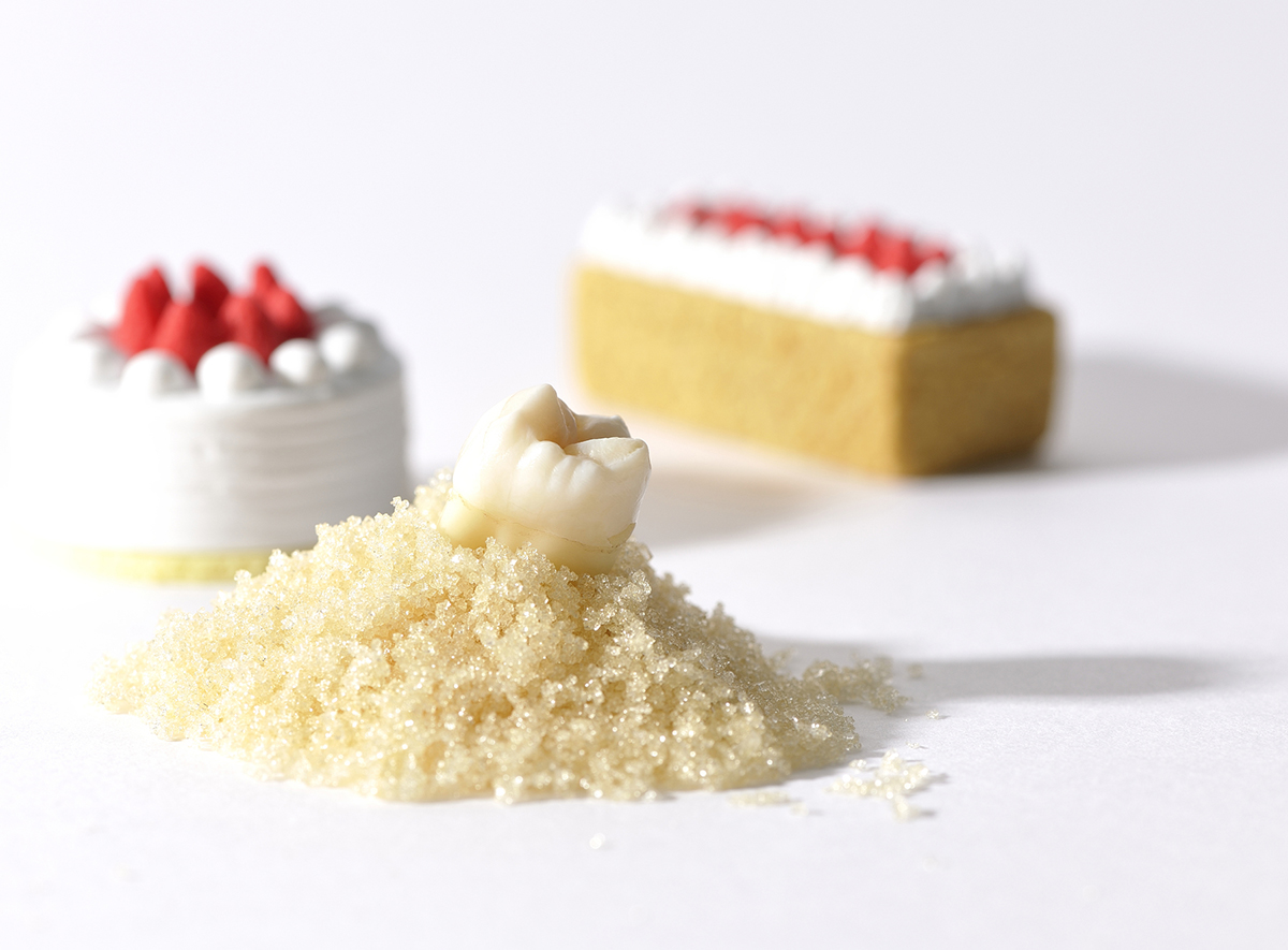 食べ物に含まれている糖質(とくに砂糖)は、ミュータンス菌(むし歯菌)が酸を作る材料に使われます。間食が多い方や、甘いものをよく摂取する方は、ミュータンス菌の大好物である砂糖をエサとしてたくさん与え、パワーアップさせてしまいます。