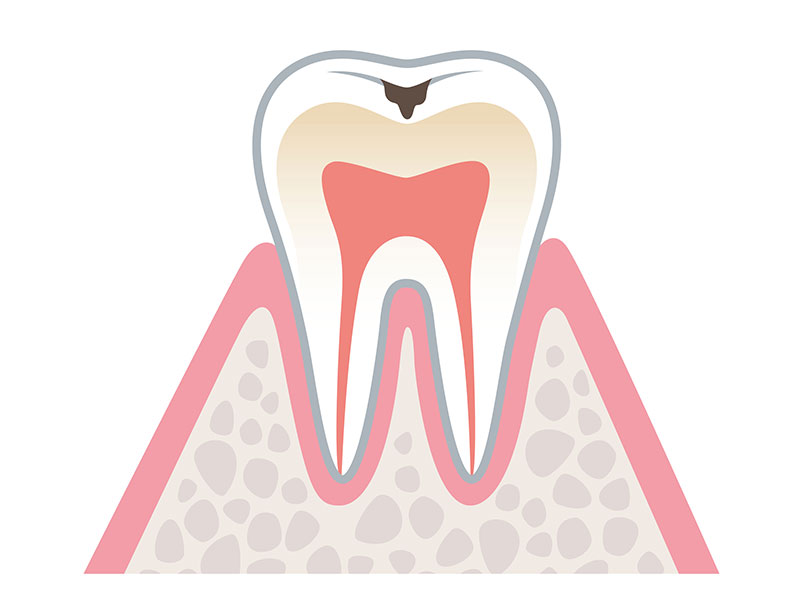 初期のむし歯は自覚症状がないことがほとんどです。気づいたときはすでに進行してしまっているということも少なくありません。重度のむし歯に進行してしまった場合、歯を削る必要性が出てきたり、元の状態の歯に戻れないことも出てきてしまいます。逆に言うと、初期のむし歯であれば、歯を削らずに済むこともあれば、削ることがあっても神経を残して歯を残すことができるということです。